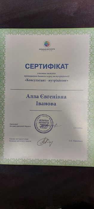 Окрім цього я ще й сертифікований спеціаліст із нутріціології. Займаюсь оздоровленням тіла не тільки ззовні, а й з середини. Впевнена, що саме їжою ми можемо "лікувати" своє тіло. І на своїх двухмісячних курсах з правильного харчування, я показую важливість їсти, отримувати насолоду від їжі, але при цьому худнути і набувати саме тих об'ємів, яких Ви бажаєте.