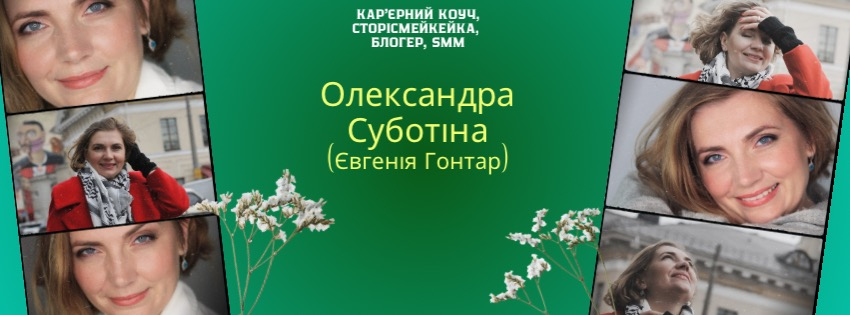 Всім привіт! Я - Олександра Суботіна (Євгенія Гонтар) кар'єрний коуч, сторісмейкейка, блогер, smm.